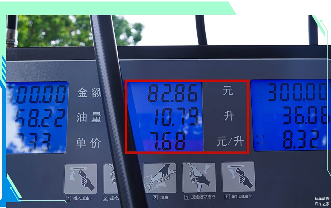最终在行驶240.7公里后我们回到了最初的加油站,将燃油补充至“跳枪”,表显里程回到了1100公里,累计加油10.79升,花费82.86元。