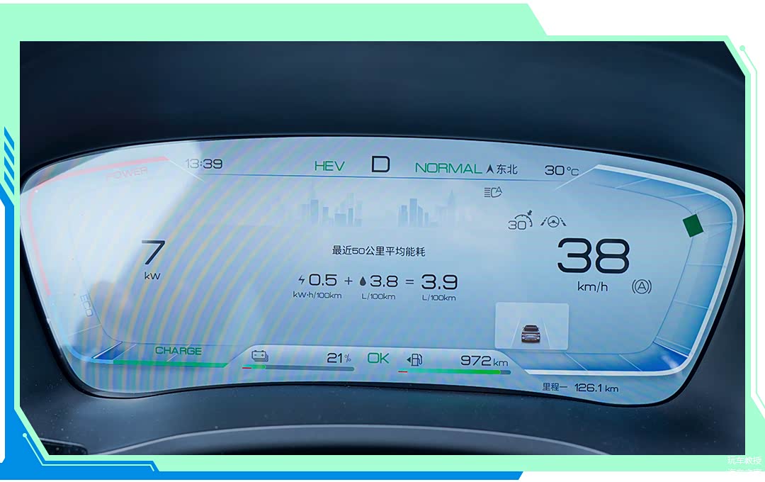 在驾驶模式上,教授将会选择NORMAL标准模式,动能回收同样选择标准,更符合大部分用户的使用习惯。一切准备都是为了得到最真实准确的油耗数据,最终测试结果不仅要教授能开得出来,也要用户开得出来。
