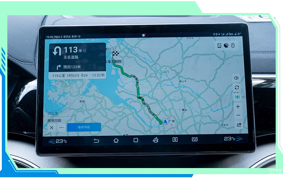 测试当天除了广州环城高速较为密集的车流,走走停停以外,进入广澳高速后还遇到了一些拥堵,拉低了平均时速。好在整体路线还算通畅,此时距离目的地还有67公里。