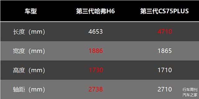 车身尺寸上哈弗H6基本是全面占优,特别是影响后排空间的关键指标轴距,哈弗H6比CS75PLUS多了28mm,车宽也多了21mm,可以为第二排带来更加宽裕、舒适的乘坐空间。