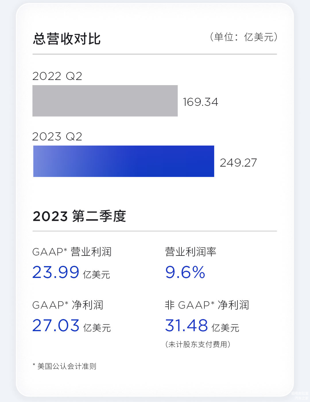 7月19日,特斯拉发布2023财年第二季度财报,二季度营收249.27亿美元,创历史新高。净利润27.03亿美元,同比增长20%。作为主要营收和利润来源的汽车业务,车辆产销情况也同比增长80%以上,可以说每一项数据都很能打。