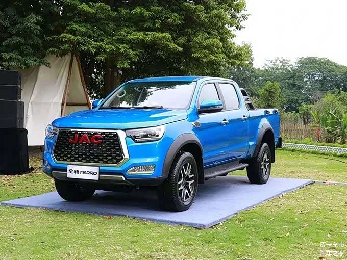 在江淮T系列皮卡中,江淮T8 PRO是一款定位为宜商宜家,既能够满足用户商用承载拉货的用车需求,还可以为用户提供舒适驾乘体验的车型。指导价9.58—14.88万元,搭载2.0T柴油/2.4T汽油发动机,匹配8AT/6MT变速箱。车身尺寸为5325/5355(5645/5615)×1880×1860mm,轴距为3090/3380mm。配备前双叉臂式独立悬架+后钢板弹簧非独立悬架。