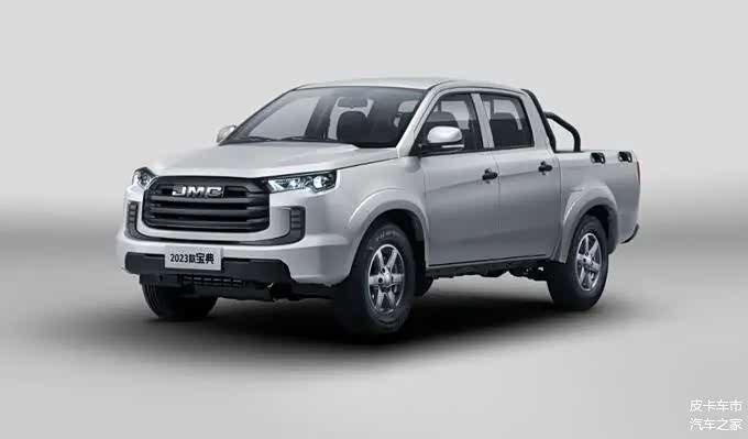 宝典指导价8.48—11.23万元,新款江铃宝典打破传统商用皮卡外观设计简单、粗犷的局限,全新的前脸设计采用了黑色大尺寸进气格栅,配合三横幅装饰和JMC品牌标识,整体更加霸气。搭载2.5T柴油/1.8T汽油发动机,匹配5MT/6MT变速箱。车身尺寸为5301/5656x1905x1782mm,轴距为3085/3350mm。