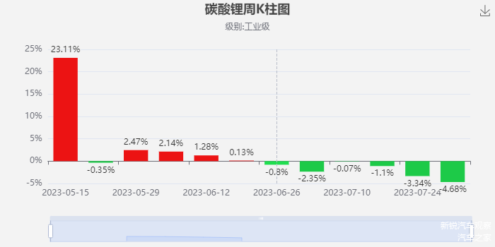 作为正极材料的主要原料碳酸锂,今年4月的售价已经跌到了20万元/吨以内,其后虽有短暂的反弹,不过也没有高于30万元/吨。