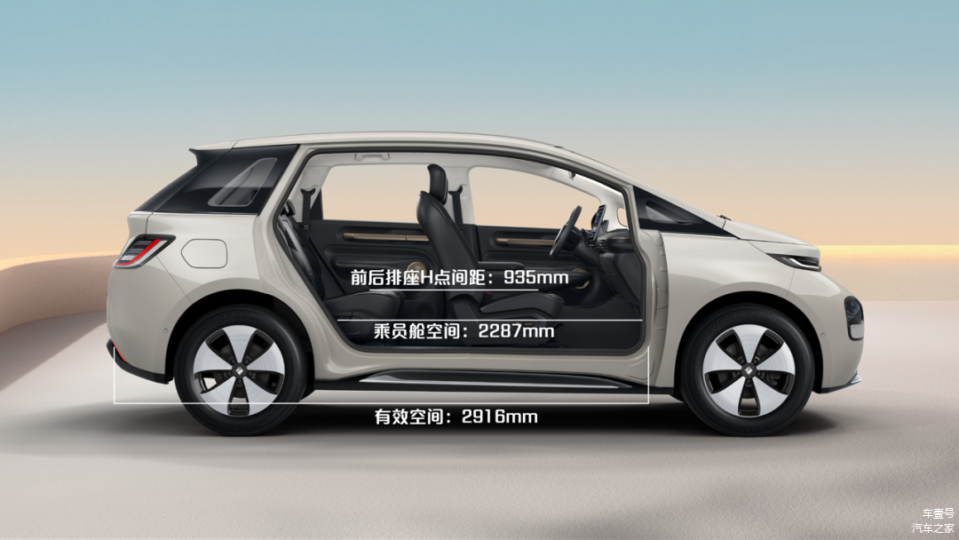 宝骏云朵360 Plus是车系中入门的配置,但是官方称这款车做到了“入门就是Plus”,拥有“超好用”的特点。和车系中的其他车型一样,这款车的尺寸在同级车中具备优势,车身三围分别为4295*1850*1652mm,优于比亚迪海豚,轴距则和比亚迪海豚一样,为2700mm。加上四轮四角的精妙设计,宝骏云朵的车内空间得到有效提升,前后排座椅座间距达935mm,后排臀部空间在同级车中处于领先,达1393mm。