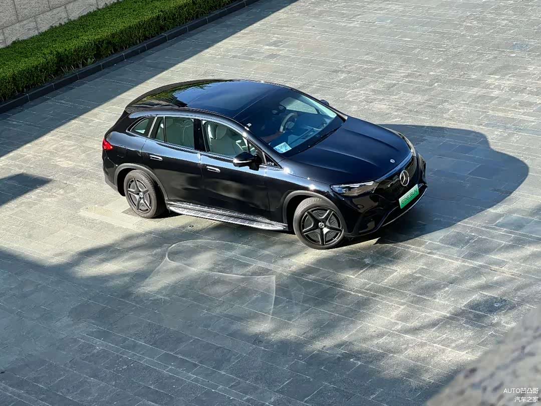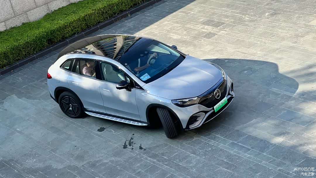 日常状态下,大多数时候,别人看到你的EQE SUV是这样的。车标挺大,而它的脸也挺大。关于脸大的事情,也得给你说说。