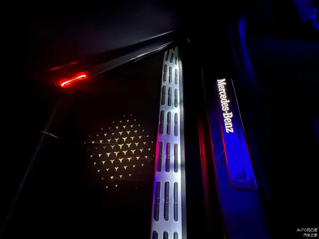 这些研发人员呀,都是晚上喜欢加夜班的吗?连中国车型标配的脚踏板上都在玩照明的招呀。车门一打开,整个踏板被独立的灯珠照亮。仪式感是不是就来了?