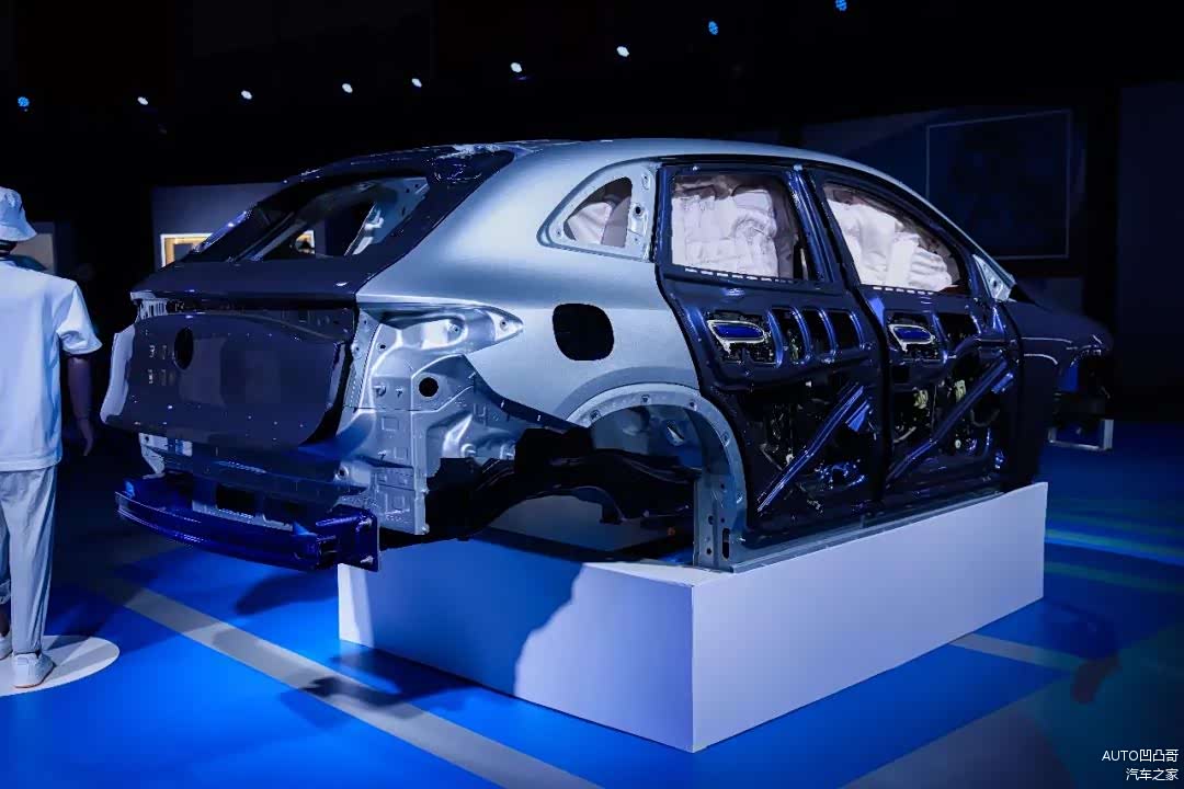 奔驰又把消费者看不到的车架子拿出来了。学名:白车身,这些结构平时都在覆盖件下,一般人还真看不到。