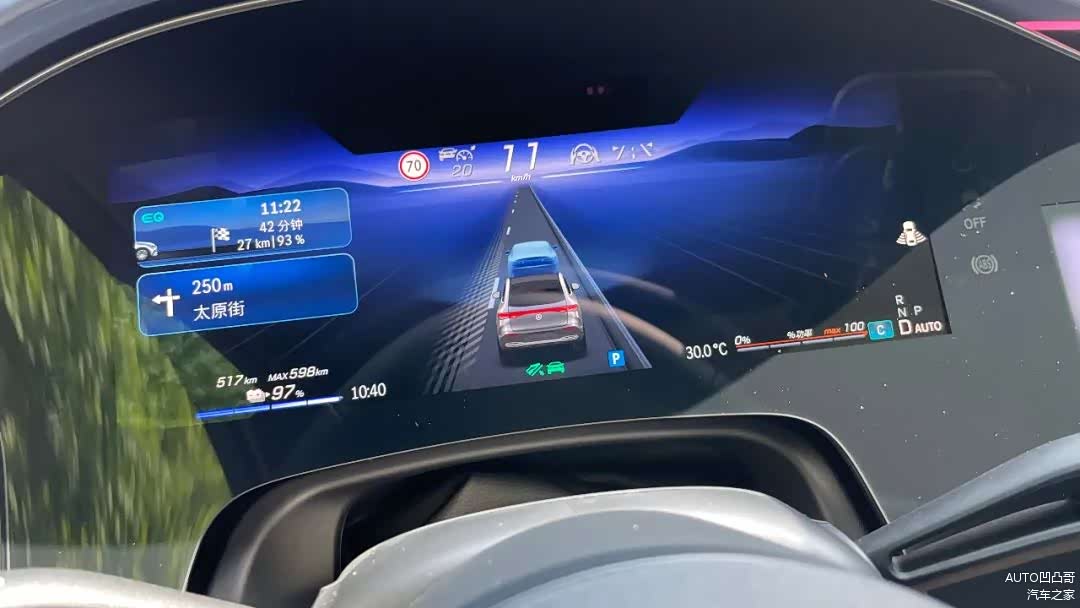 甚至,在前面有车的时候,只要松开加速踏板,它还能自动缓缓的刹停。绝大部分时候,减速的力量都很柔和,不会把人搞晕车。