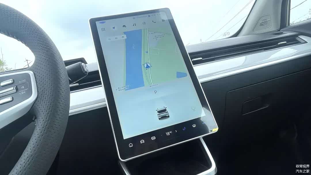 其实哪吒AYA整个中控台,并没有太多浮夸的设计元素,看起来相当的平和。值得一提的是,素雅的前置仪表盘一直是我喜欢的,有点HUD抬头显示的感觉。