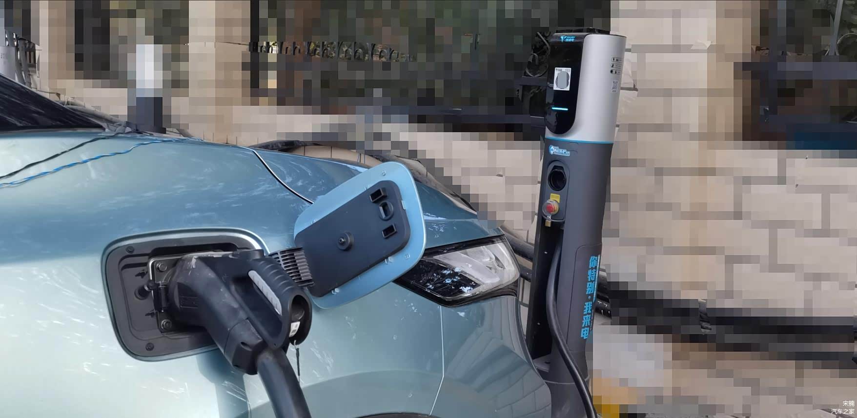 在地表温度约为67摄氏度的吐鲁番,海马7X-正在使用某品牌直流充电桩进行充电。