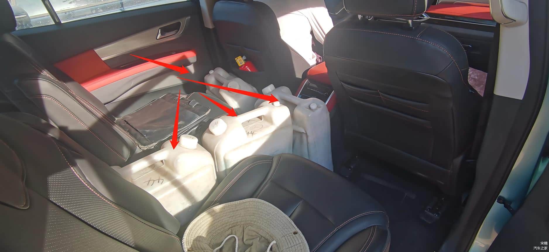 第二排座椅的地板搁置了诸多配重,模拟正常用车工况时诸多车身姿态。