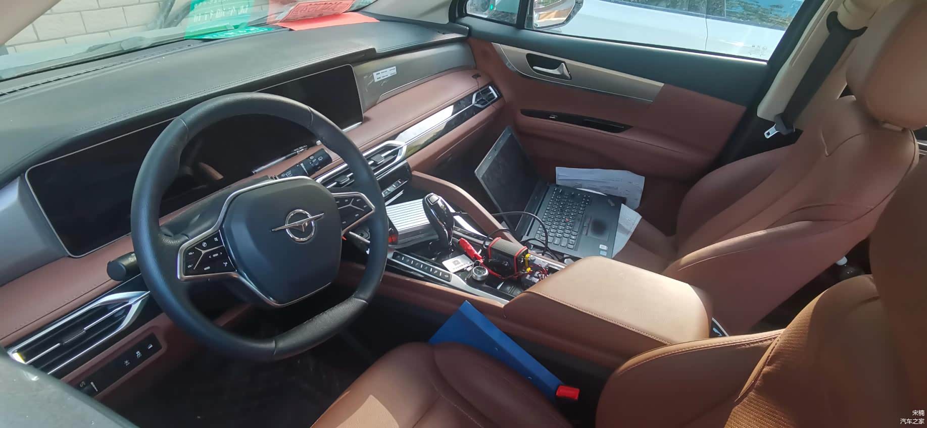 这台海马7X-的副驾驶位置搁置1台实时监测行车数据流的手提电脑。