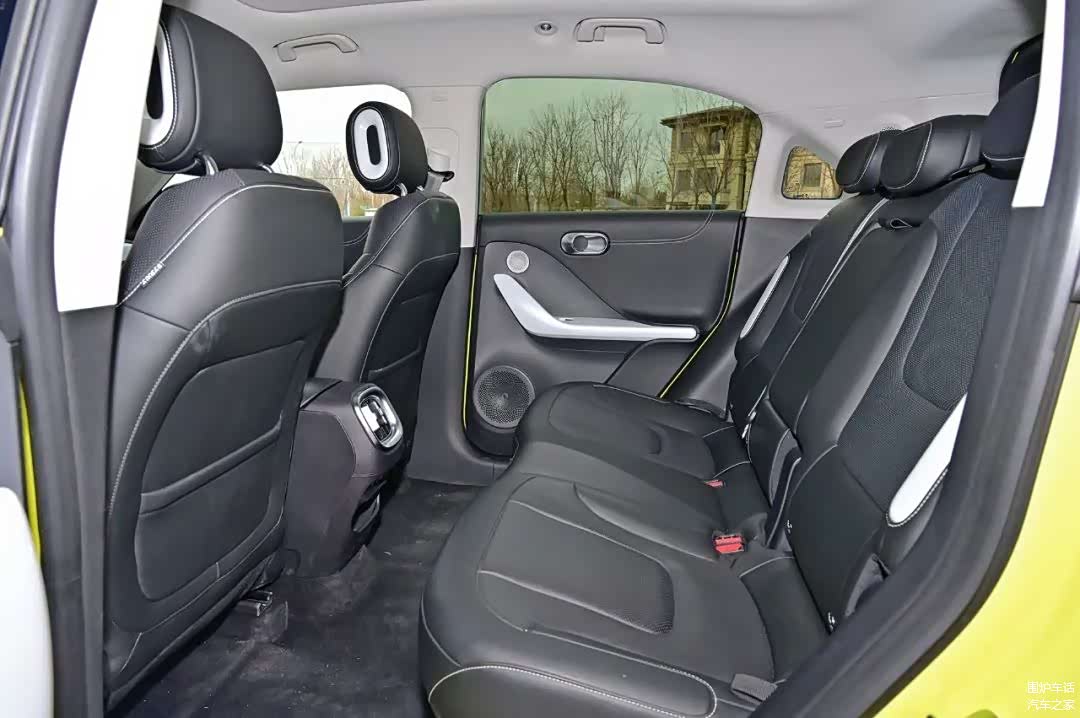 smart精灵#1给人感觉大了主要是因为1822毫米的车宽已快达到了紧凑级车的水平,而且轴距也达到了2750毫米,只是他前后悬很短,四轮向四角靠拢,所以看着并不显大。不过车内空间可是着实的大了。他的宽车身和全景天窗给车内带来的宽阔氛围,后排腿部和头部空间都比较宽裕,后排地板也比较平整,后座椅还有130毫米的前后移动量。