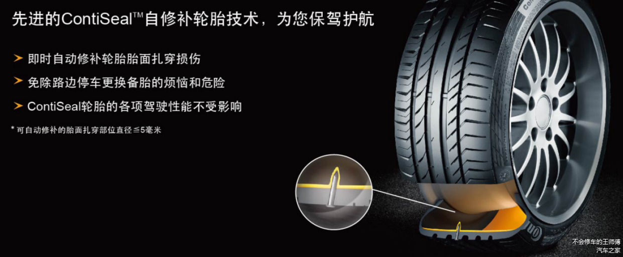 ContiSeal自修补技术可以面对道路上92%的胎面刺穿风险,并可以应对直径≤5mm钉子的穿刺。