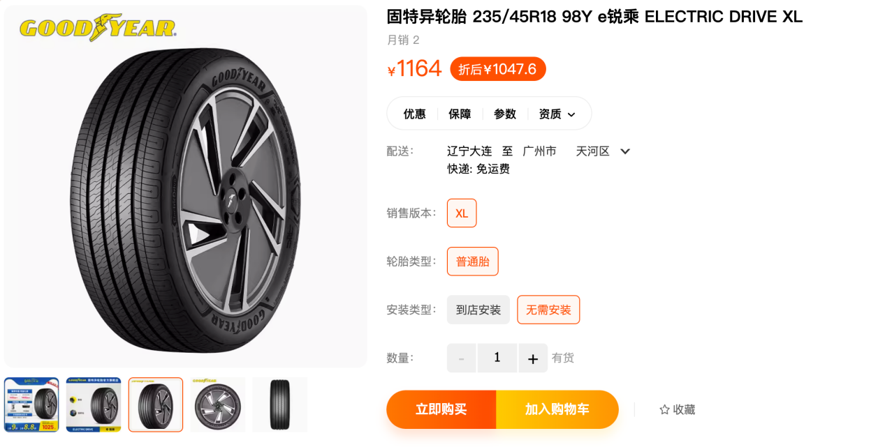 固特异e锐乘是专为电动车而设计的轮胎产品,主要特点是操控和舒适静音的性能表现。