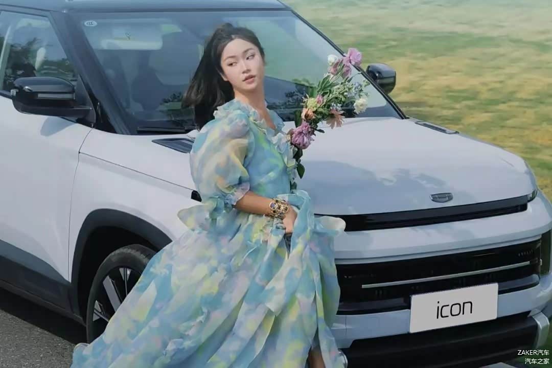 第三款,吉利 icon(图片 | 参数 | 询价) 是一款专为女性消费者设计的小型SUV,它采用了独特的外观设计,前脸为内凹式的工字型设计,侧面的线条简约流畅,配备有悬浮式的车顶、隐藏式门把手和五芒星轮毂,尾灯组的造型类似于蝴蝶结,十分的别致。