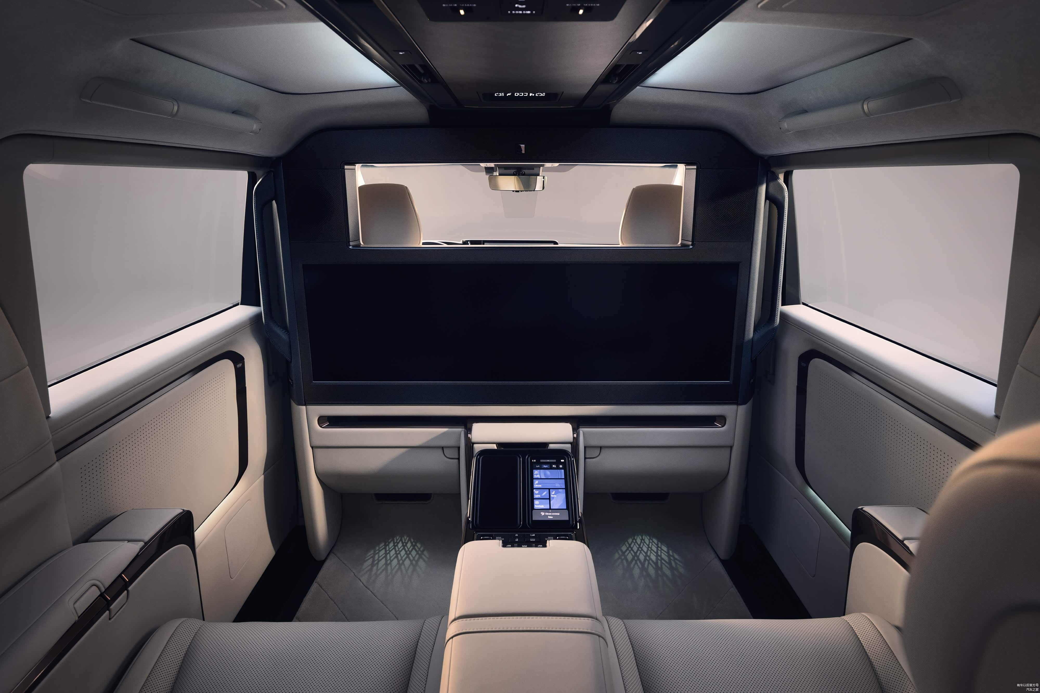 首发的350h七座版采用2+2+3布局,后期将会推出500h六座版以及500h四座版。其中四座版车型将配备隔断屏窗,中间带有可调光功能的升降玻璃以及48英寸宽屏显示器,并将搭配定制版马克莱文森高级音响系统。