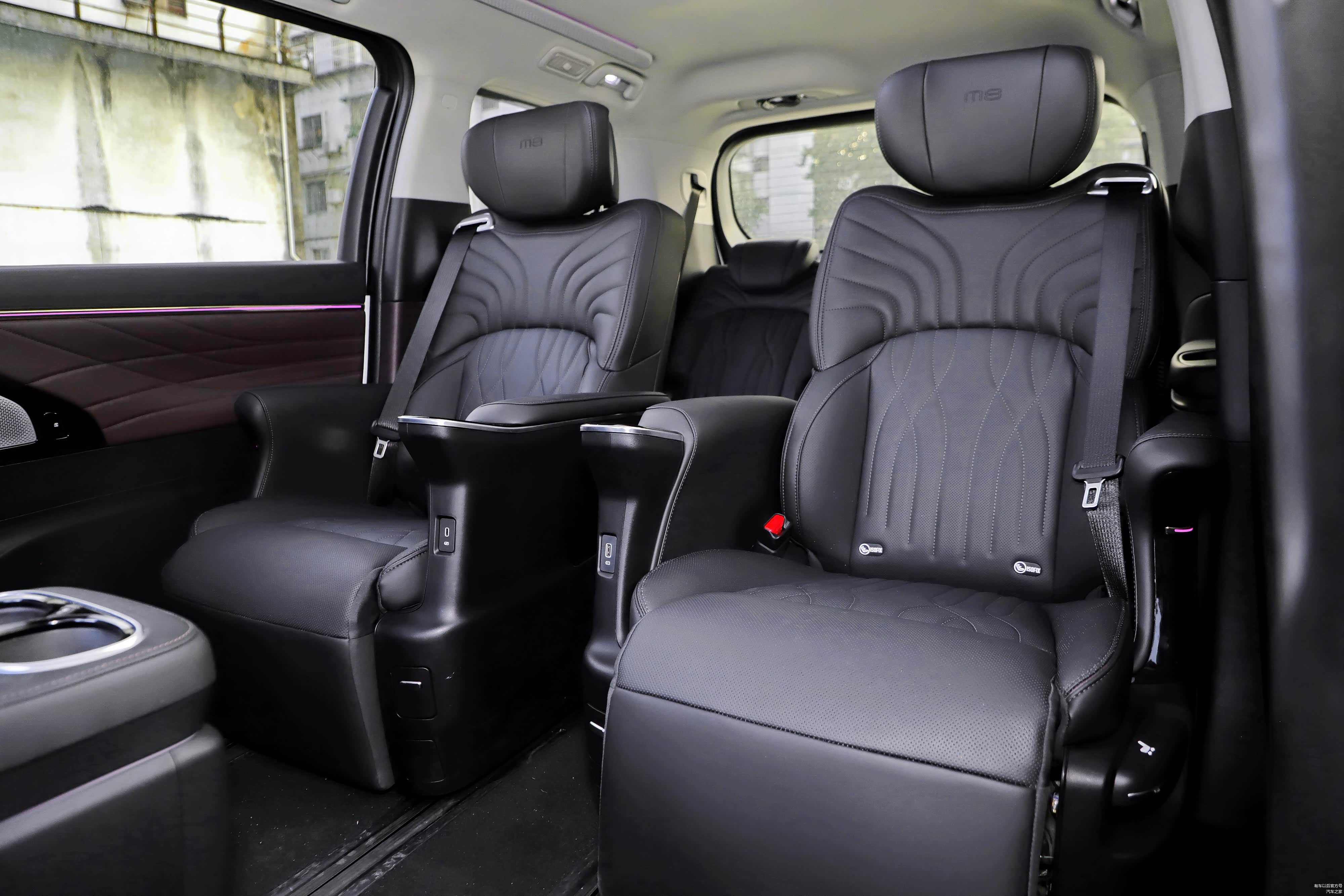 二排座椅配有通风加热按摩功能,但取消了小桌板和全车隔音玻璃稍显遗憾。动力方面,M8大师版配备2.0T+8AT的组合,最大输出252马力/400牛·米扭矩。