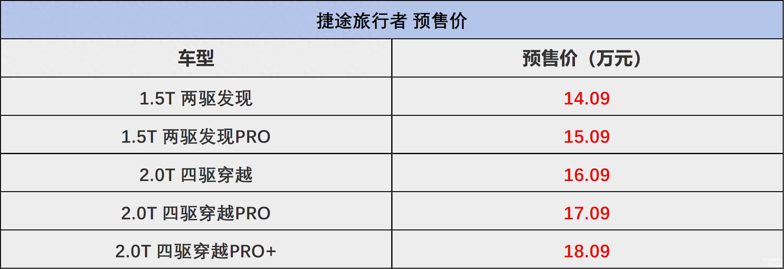 今年以来,硬派造型的SUV在车企之间盛行,上到百万级的仰望U8,下至8万级的宝骏悦也,可见国人对于这类风格SUV车型还是比较热衷的。本届成都车展,捷途汽车旗下的旅行者终于是公布了预售价,同样拥有硬派造型的它,本次共发布了5款车型,包括2款1.5T车型和3款2.0T车型,涵盖两驱和四驱,预售价区间为14.09万至18.09万。