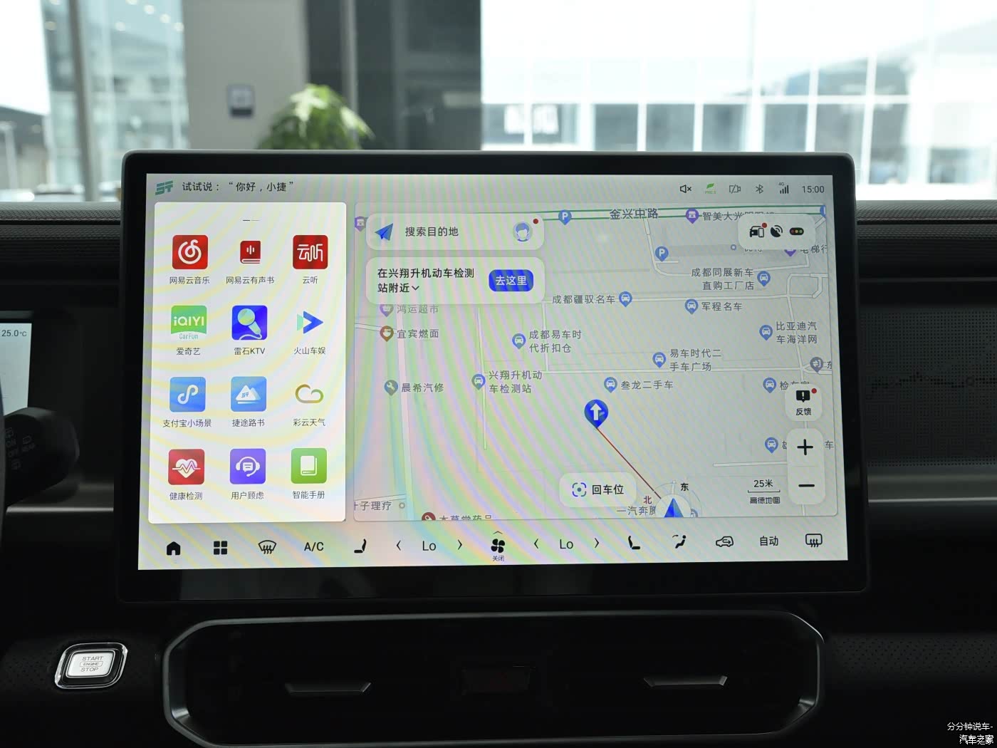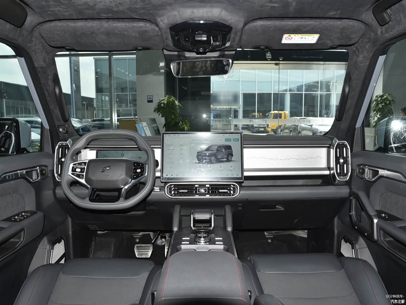捷途旅行者的内饰可以看到很多平直的线条,符合它硬派的气质,中间是一块15.6英寸的屏幕,内置了8155芯片,支持4区域的语音唤醒以及后续的OTA升级等。方向盘前方配备了10.25英寸的液晶仪表盘。