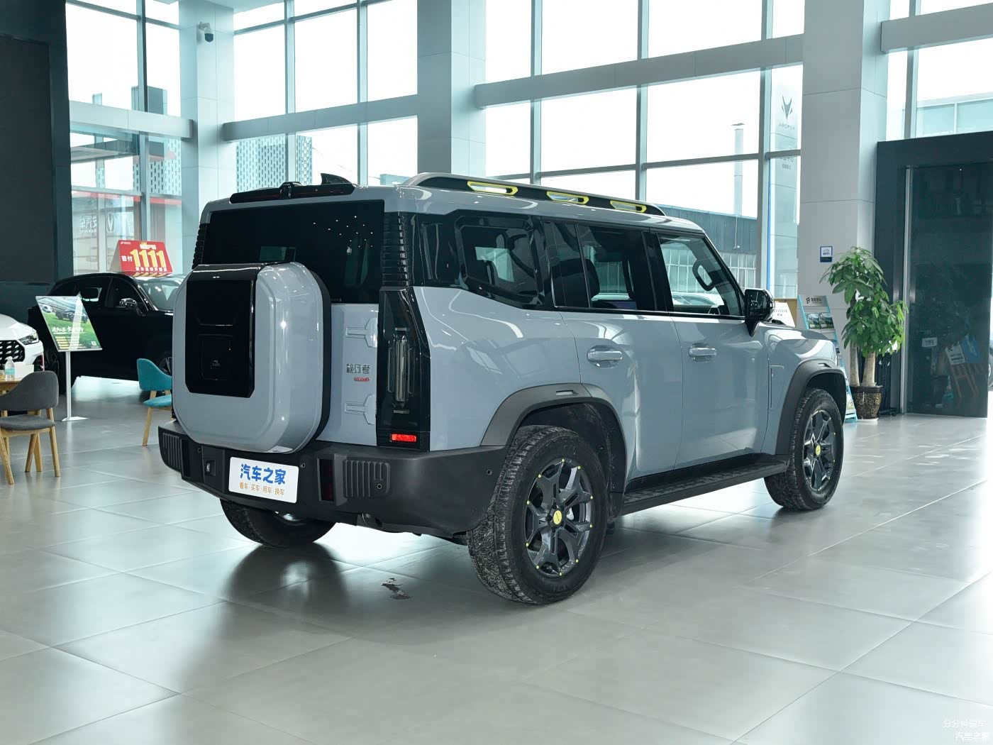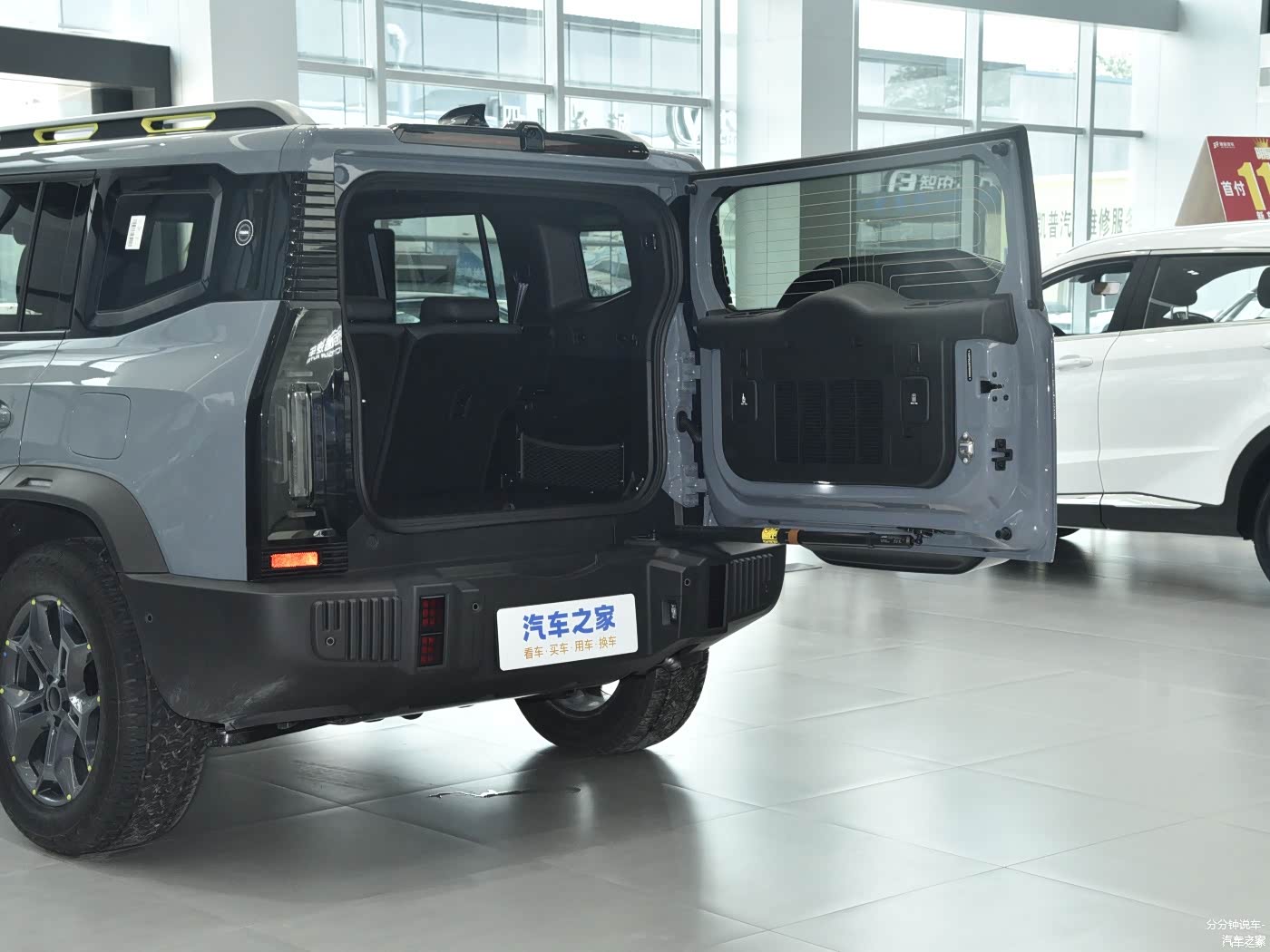 车尾是硬派SUV常见的“小书包”设计,竖状的尾灯加上平开式的尾门,展现出很强的越野气质,同时该车前后保险杠都非常粗壮,除了增加车辆气场之外,也可以降低车辆剐蹭后的维修成本。