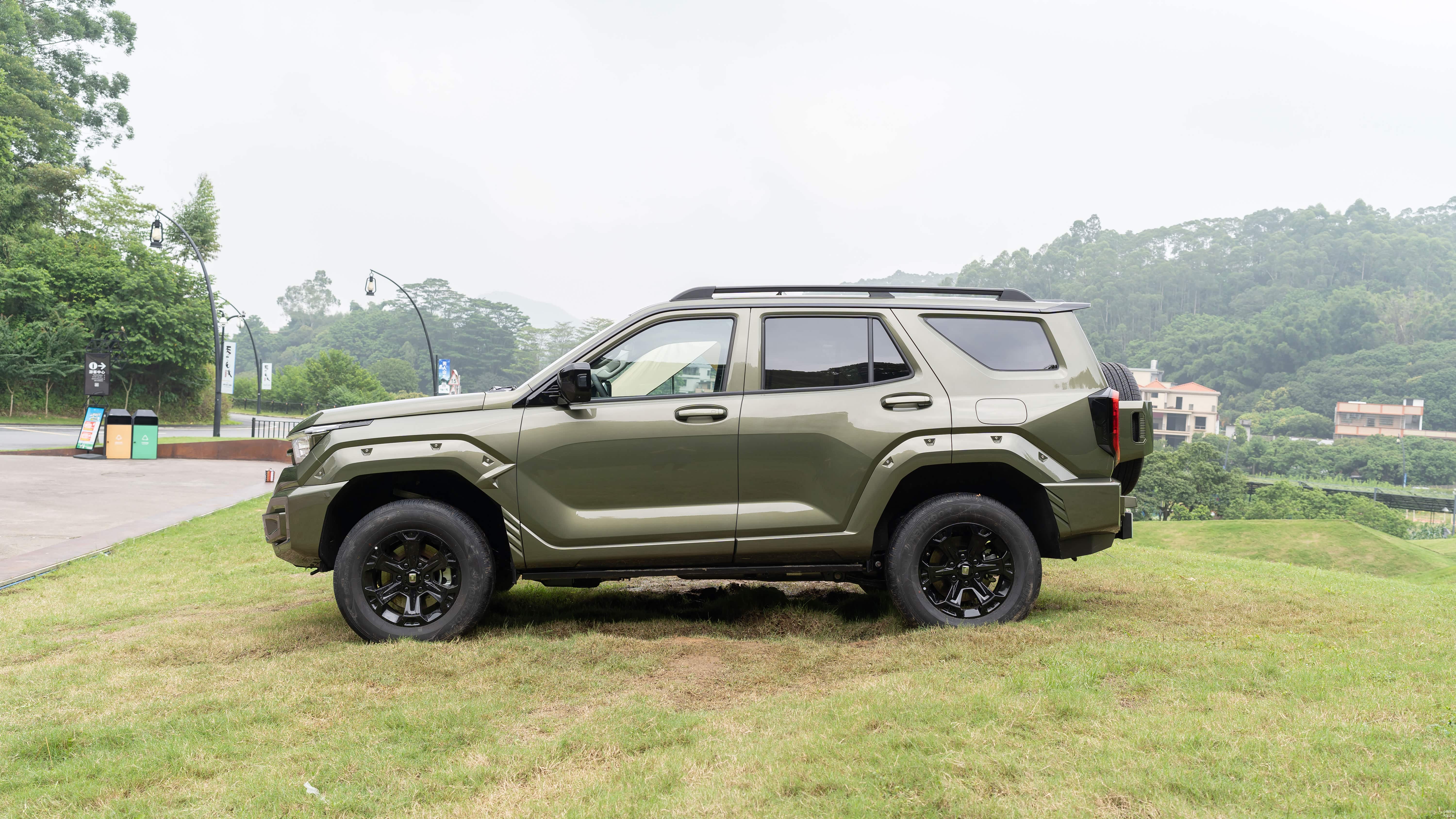 聊这么多越野还是得来提点硬指标,底盘采用非承载式结构,采用前双叉臂,后整体桥五连杆悬架,通过性方面接近角33°,离去角30°最小转弯半径5.6m,最小离地间隙224mm,最大涉水深度800mm,有着不错的越野通过性,能应对复杂路况。