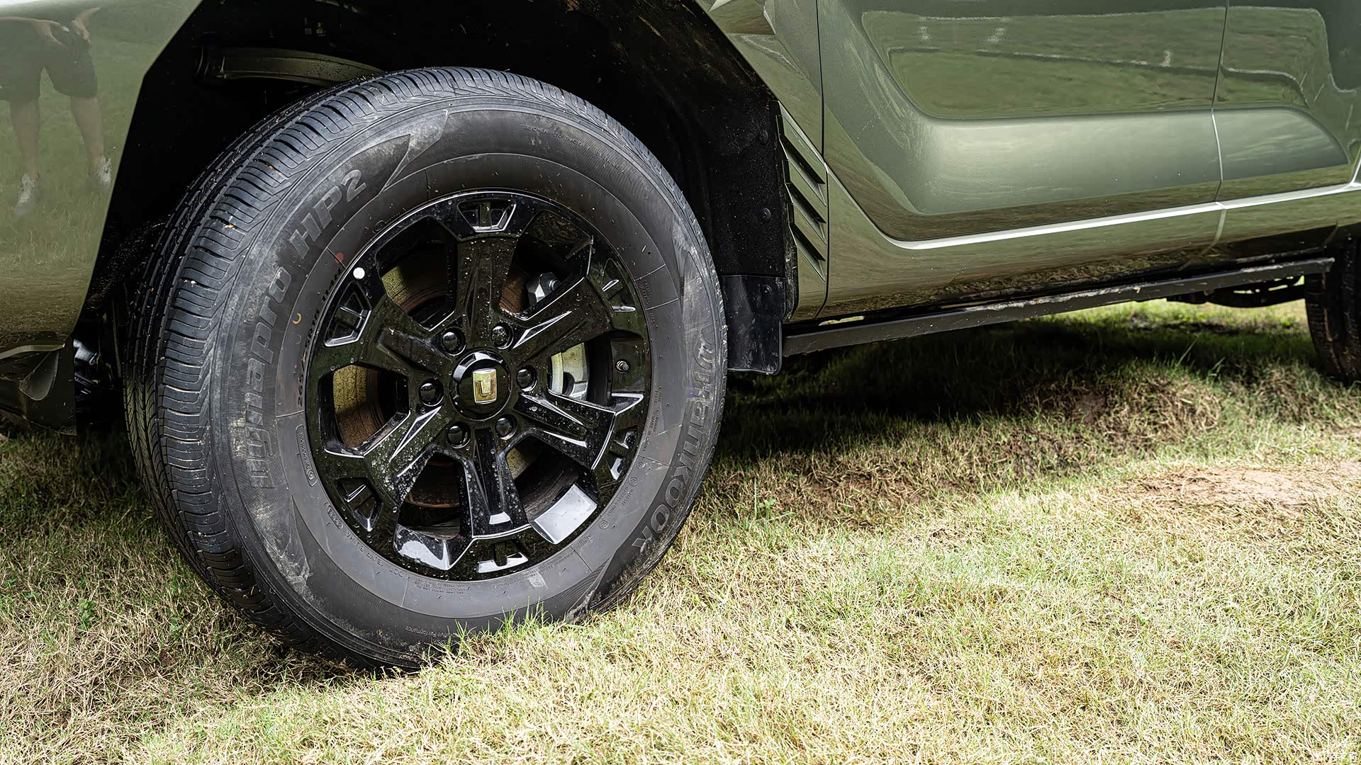 我们实拍车型配备了韩泰Dynapro HP2系列SUV专用轮胎,规格为265/65 R18,还给车主提供了固铂(COOPER) AT3越野胎可选,规格为235/65 R18的。