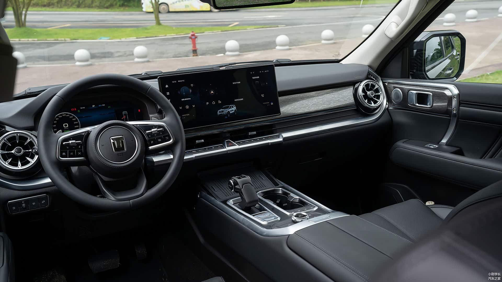 坦克400Hi4-T车身长宽高分别为4985mm/ 1960mm/1900mm,轴距2850mm,标准的中大型SUV尺寸,另外还标配原厂电动踏板,对于这种车来说上下车很方便。
