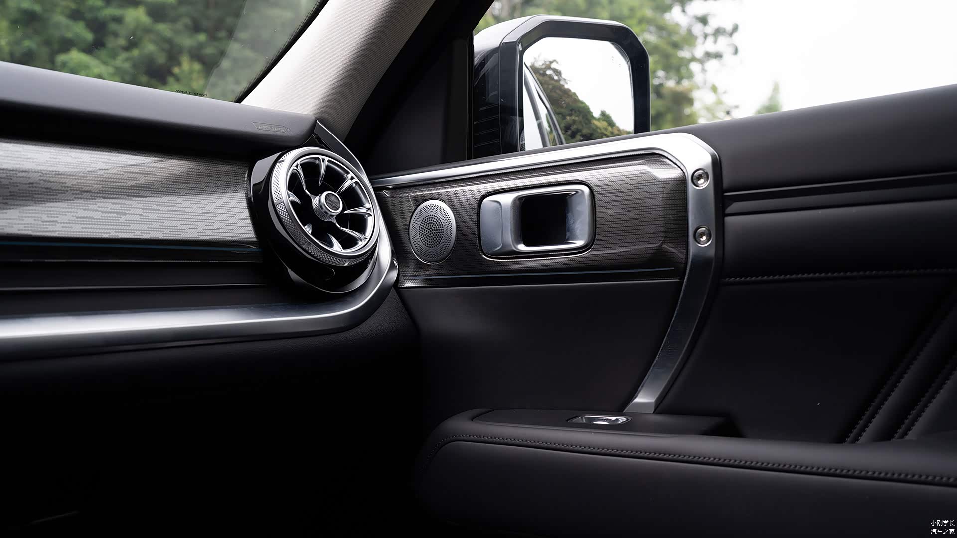车厢的重点在于实用,没有过多呈现「野」的元素,仅在空调出风口、门板、门把手等位置做一些点缀,加上银色饰板装饰,整体设计用料还是契合这台车的。