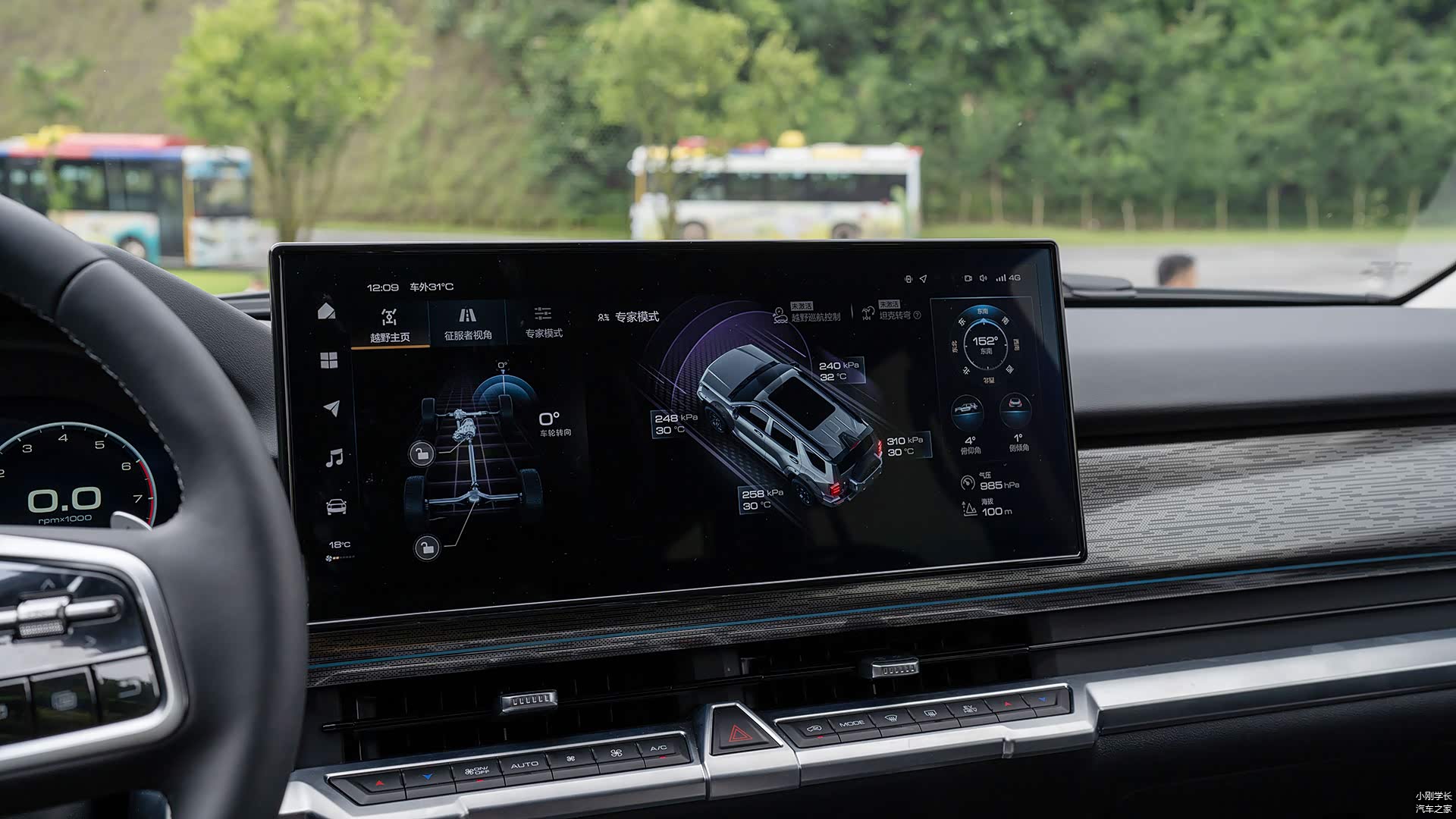 坦克400Hi4-T搭载全新一代TOD Mlock智能四驱系统,能做到智能分配前后桥扭矩,前后轴之间使用TOD分动箱和传动轴连接,还提供了三把锁,真正的机械式差速锁(标配中、后锁,可选前锁),此外少不了的全地形控制系统,配备标准/运动/经济/雪地/泥地/沙地/4H/AUTO/4L/岩石/专家/涉水12种驾驶模式。