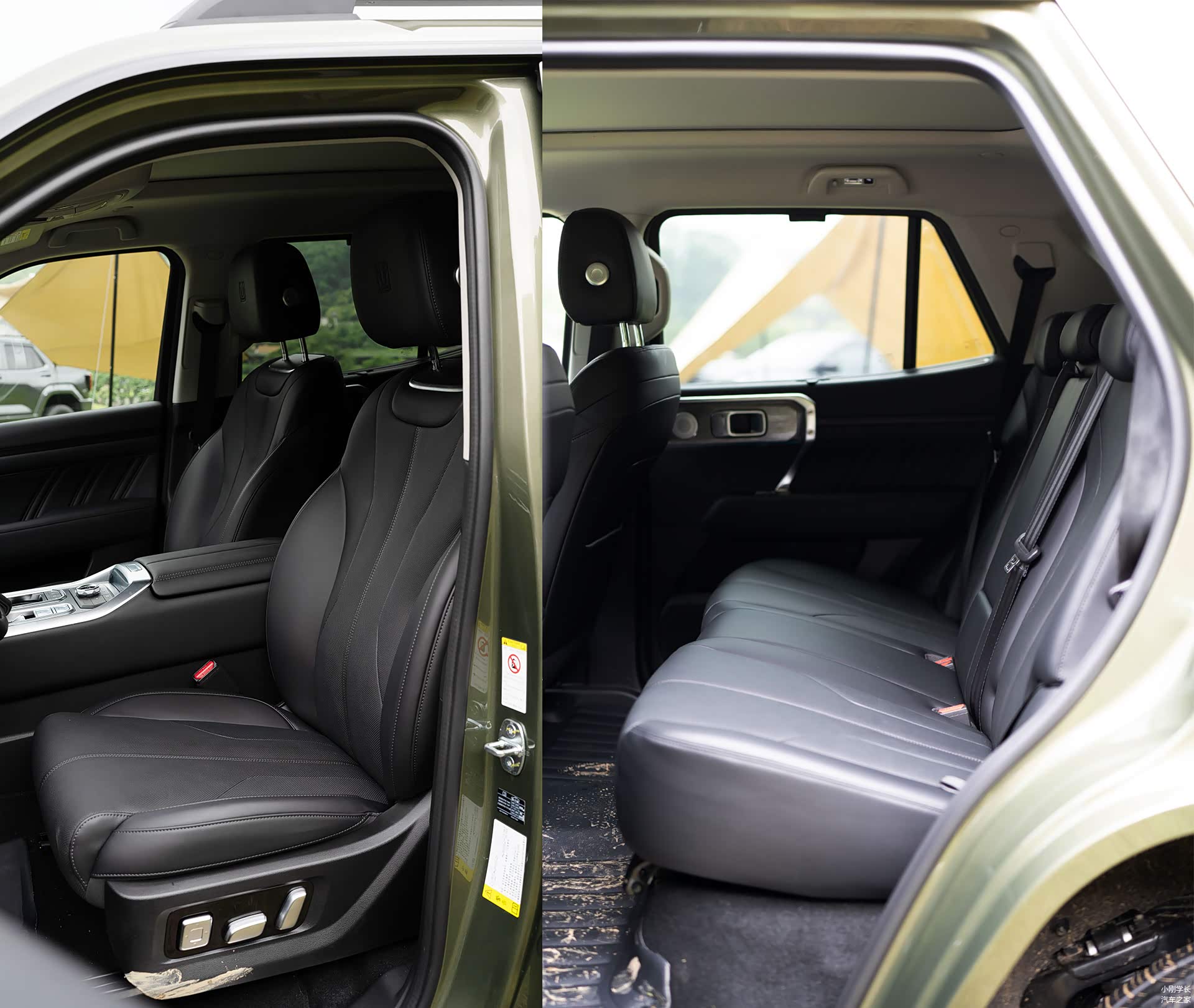 实用的另外一个点是体现在空间上,相比此前体验的坦克300车内空间体验要更好,配备Nappa真皮座椅提供通风加热按摩以及座椅记忆功能,前排座椅配备了电动6向调节 8点按摩 电动4向腰部支撑,后排则提供了独立温区的空调和USB供电接口。