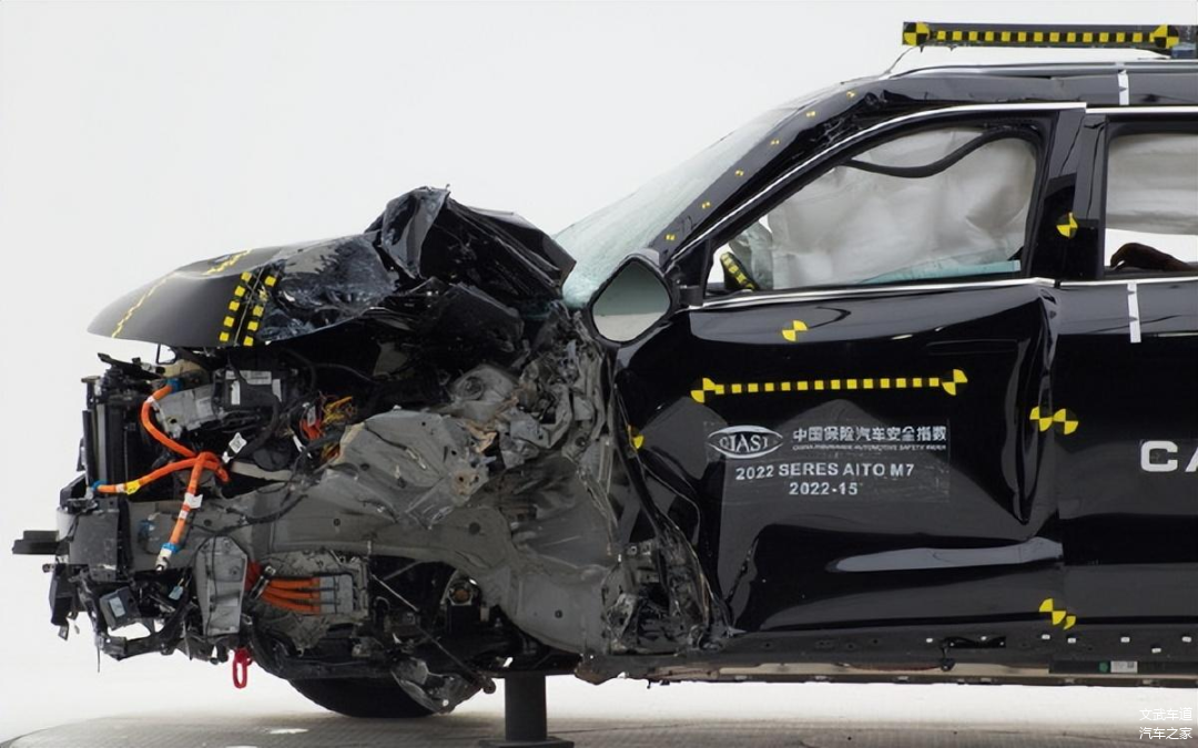 而问界M7之所以上市以来销量不及预期,跟其糟糕的产品力表现不无关系。根据去年11月份中保研公布的碰撞成绩显示,AITO问界M7在中保研碰撞测试中A柱弯折,从而深陷质量风波中。在中保研的25%偏置碰撞中,问界M7疑似A柱出现问题,发生了弯折。从碰撞视频中不难发现,问界M7碰撞测试后,车辆前部发生溃缩,A柱与车顶连接处也疑似发生明显变形。而这明显跟余承东宣称的“完全可以超越百万级豪车”有较大的出入。