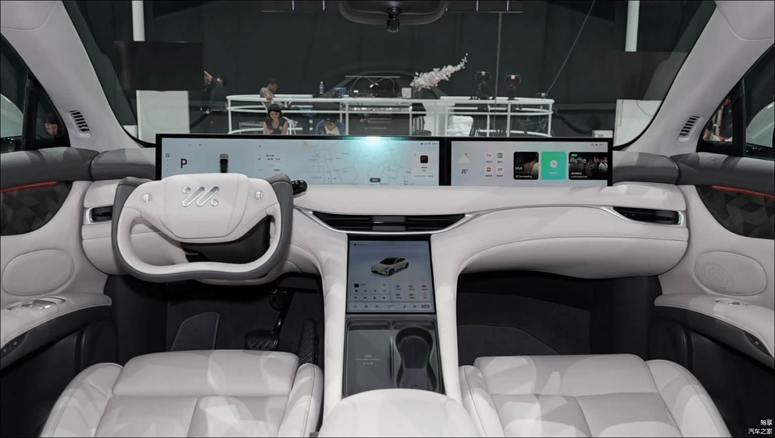 最后,内饰方面,智己LS6很前卫,多屏幕配备让人眼花缭乱。都说国产汽车的科技感就在于配备多块大屏幕上,而智己LS6恰好印证了这一点。在航天飞机风格的方向盘前方,我们看到了一整条都是屏幕。此外,中控大屏幕也非常明显,而且该车还支持无线充电。或许这些都是国产新能源汽车的智能化之一吧。