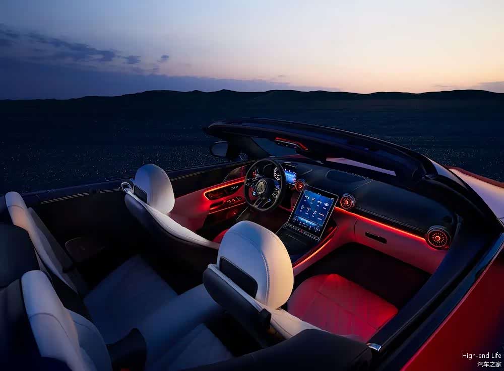 进入内部,数字时代的高科技为座舱赋予了新的灵魂,全新的Hyperanalogue超模拟座舱设计,科技豪华兼具。2.3英寸带AMG专属图形的全数字仪表盘显示屏与“筒式”立体遮阳板集成为一体,11.9英寸电动可调节中央显示屏可在12度到32度之间灵活调节倾斜范围,防止强光炫目。全新设计的2+2座椅布局,让生活和激情相得益彰。