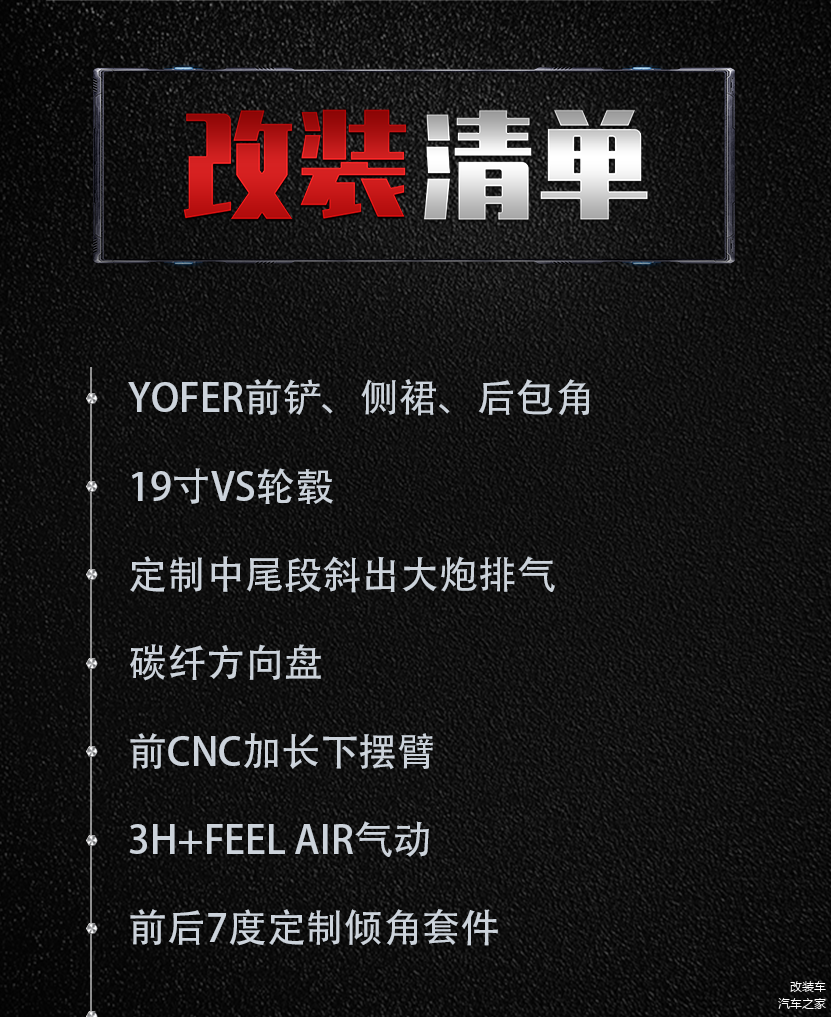 "最后,这辆车还会继续改装下去,后续会把前后倾角做到两位数,换套大数据轮毂。"
