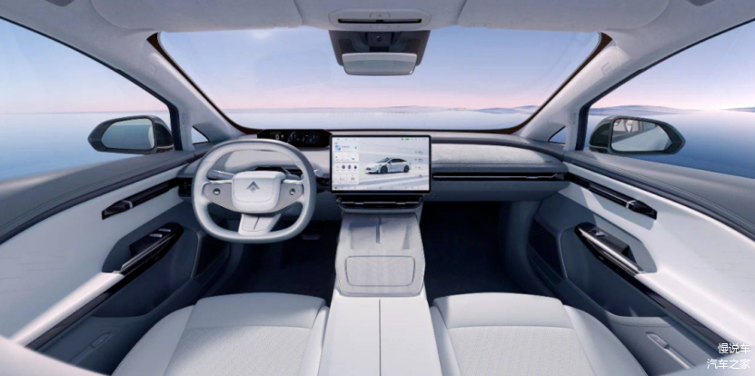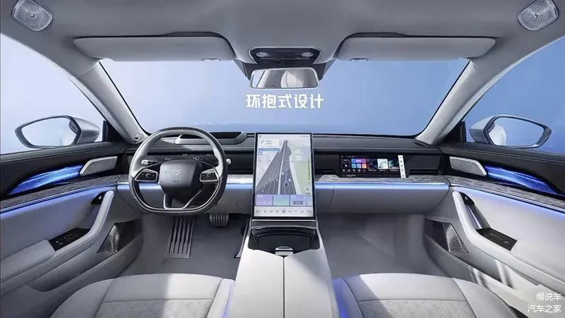 内饰上呈现出了是讲究质感和科技感的轻奢风格。全粒面头层皮NAPPA座椅,采用原木扶手,全系标配,足见厂家对于豪华细节的孜孜以求。中控部分提供了一块搭载高通骁龙8155芯片的14.6英寸2.5K高清中控屏,系统的界面和操作逻辑与埃安类似。