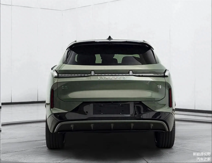 平直的车身腰线,看起来更有力量。宽大的轮眉,超高的离地间隙,搭配超大尺寸轮毂,展现出很好的运动效果。两侧配有一条纵向延展的领克LOGO呼吸灯带,充电时会随车辆展示呼吸光效,同时当用户靠近车辆时起到迎宾效果。尾部,盈能晶体贯穿式尾灯,同时在中央的“LYNK&CO”车标也可以点亮,夜间点亮后,提高整车辨识度。新车车身尺寸的长宽高分别为4820x1915x1685mm,轴距为2848mm。