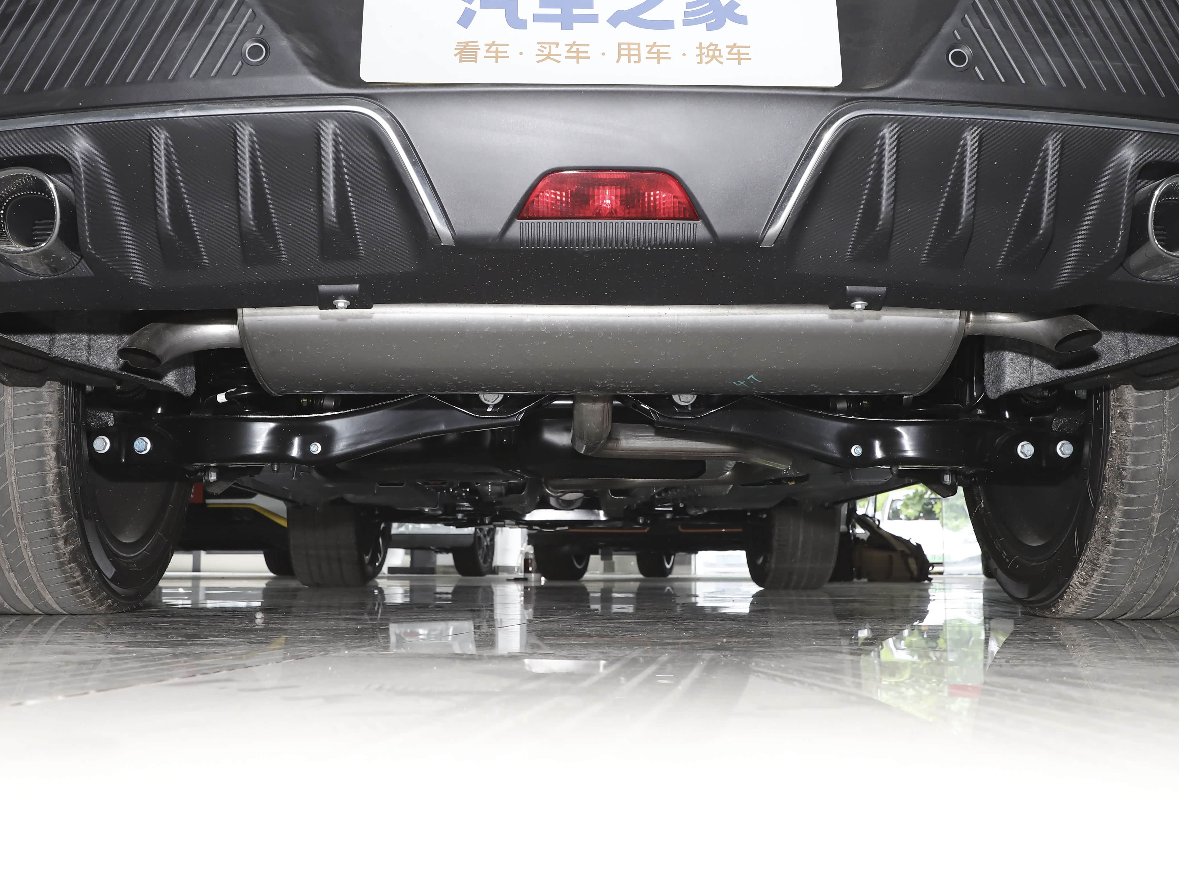 车尾部分的设计看上去更具运动气息,顶端配备了大尺寸的赛道尾翼,并且采用了当下比较流行的贯穿式尾灯设计,点亮后的视觉效果非常出色,搭配底部扩散器,以及双边共四出式排气系统,彰显出强烈的战斗气感。