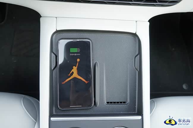 另外,中控屏下面有两块无线充电面板可以同时无线充两台手机,并且还有散热孔,放置手机充电过热,使用非常方便。