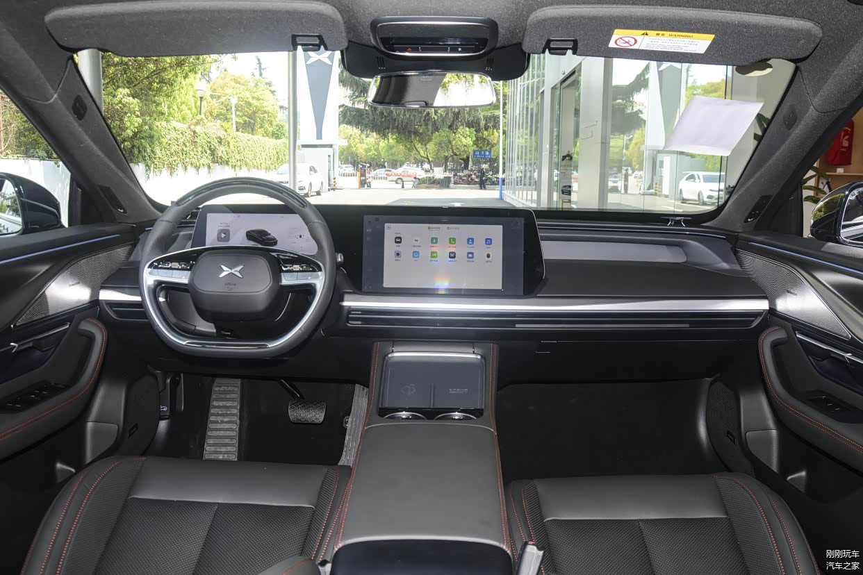 小鹏P7i同样采用了对称式的布局,只是设立了14.96中控 10.25英寸液晶仪表双联大屏的形式,同时加入了大量的银色装饰条,中控台上皮革材料用的不多,但在座椅、中控扶手、门把手等多处位置都有着缝线工艺的加持,红黑相间的配色对内部高级感有着很强的提升效果,两侧位置则设有标准的扬声器。与昊铂GT座舱相比,小鹏P7i的内部元素众多,但多少显得华而不实,且用料上还是昊铂GT更为高级。