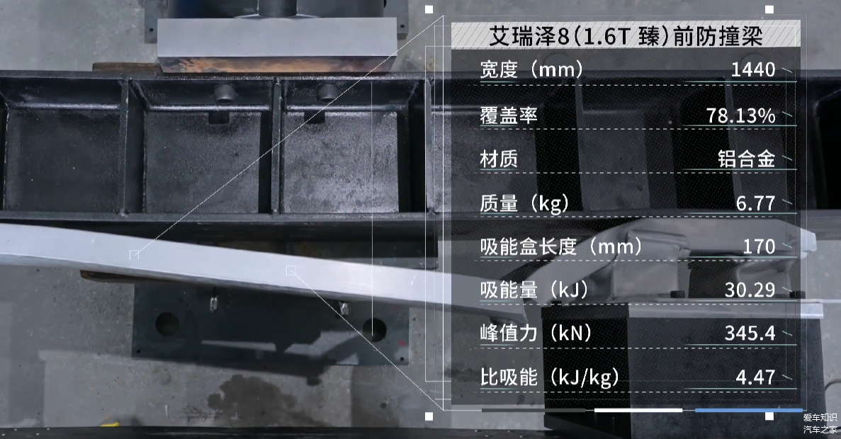 防撞梁这个最早为低速碰撞而生的零件,现在已经进化为汽车高速碰撞的重要组成部分,结构强度一定要必须拉满!艾瑞泽8的前防撞梁在《懂车大爆炸》节目中的防撞梁强度测试中,测得吸能量为30.29kJ,极高的结构强度让艾瑞泽8在一众对手中脱颖而出,在防撞梁强度测试部分拿下了桂冠。高强度防撞梁在发生碰撞时,搭配吸能盒能够有效降低汽车因碰撞而对车内驾乘人员造成的伤害。而基于实际场景,所衍生出的25%与40%偏置碰撞中,强度更高的防撞梁则有机会将车身单侧碰撞而产生的能量,传递给车身的另一侧,分担撞击侧压力,让撞击能量充分分解,从而有效保护车内驾乘人员安全。
