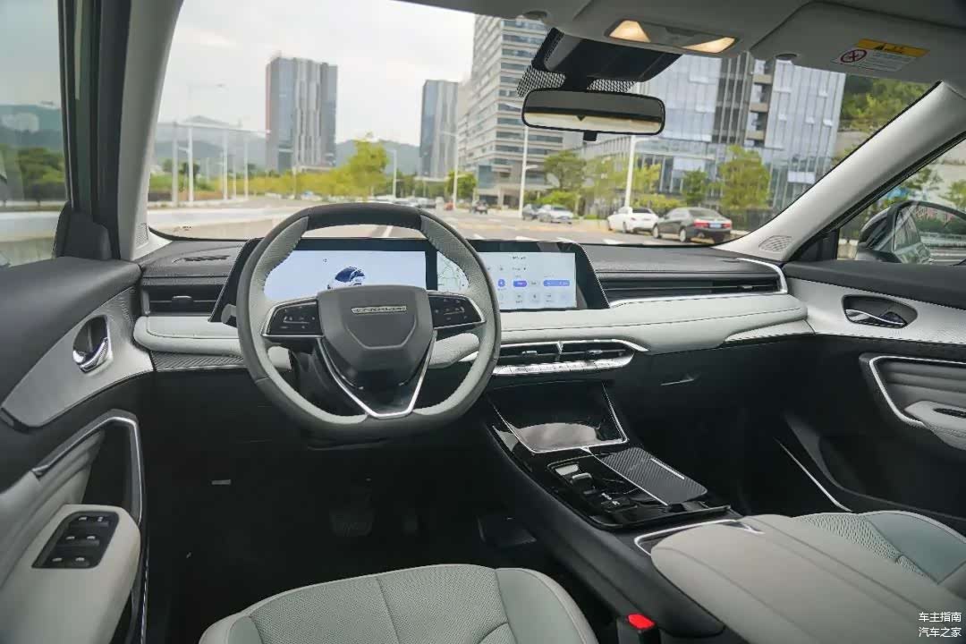 第二个优势点,那就是整车NVH,这车的发动机噪音非常低,是同级混动车中几乎最好的水平,另外就是对环境噪音的隔绝较好,即便旁边有大货车经过,车内噪音增益也并不夸张,在同级的中国车中算是中上水平,在同价位的合资车中更是降维打击。