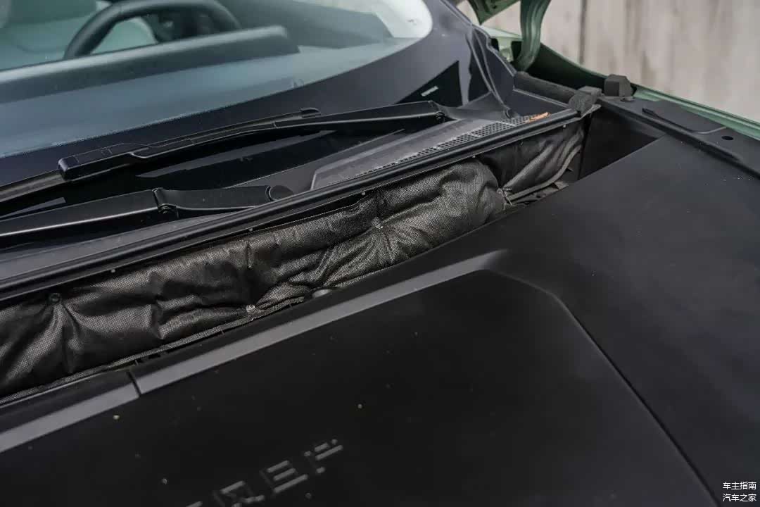 打开启辰大V DD-i的发动机舱可以发现,发动机被隔音阻振板完全包覆,就连一些缝隙塞满了隔音棉;此外前排和天幕都采用了双层隔音玻璃,整车的隔音物料堆得挺足。