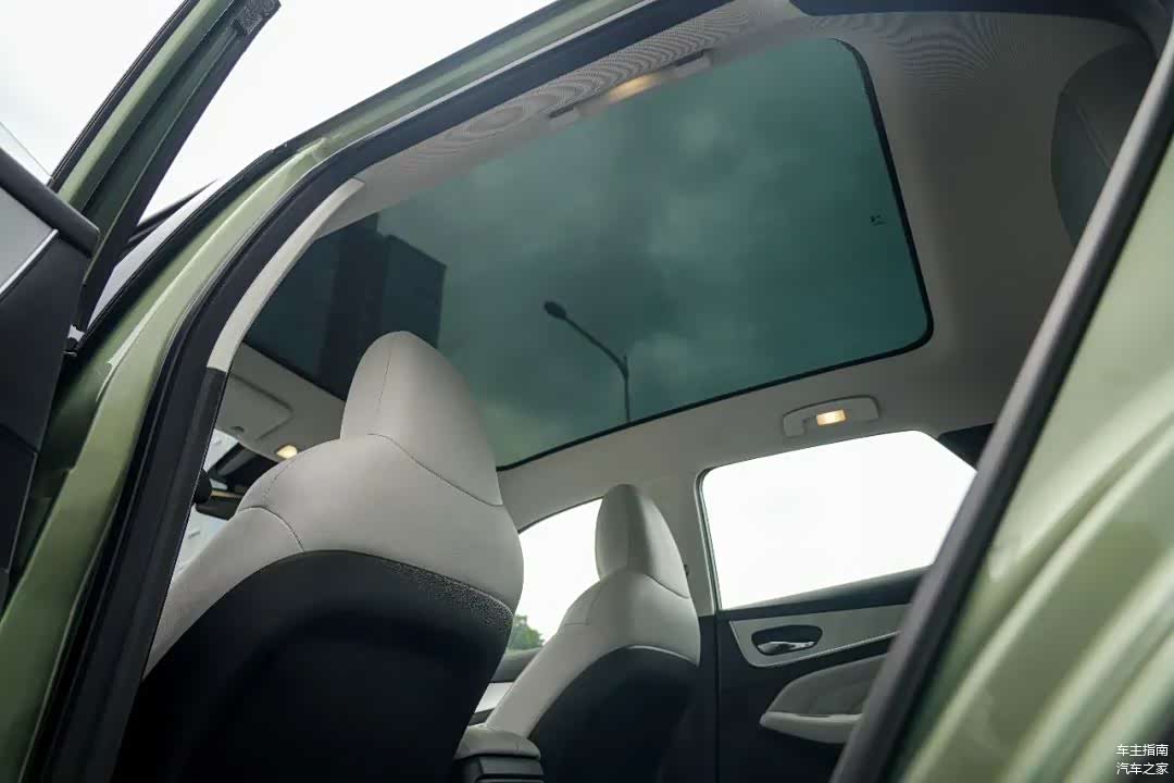 启辰大V DD-i的车长为4607mm,比竞品都稍短一些,而且它的车头相对也较长,因此它的后排腿部空间并没有预想当中那么宽敞,只是达到了够用的水平。而且作为一辆插混SUV,电池或多或少侵占了部分车内空间,尤其是纵向空间,这可能也就是启辰大V DD-i为何要使用这么一大块玻璃天幕的原因,因为玻璃天幕能够腾出更多的头部空间,而且视野更开阳,能有效避免压抑感。