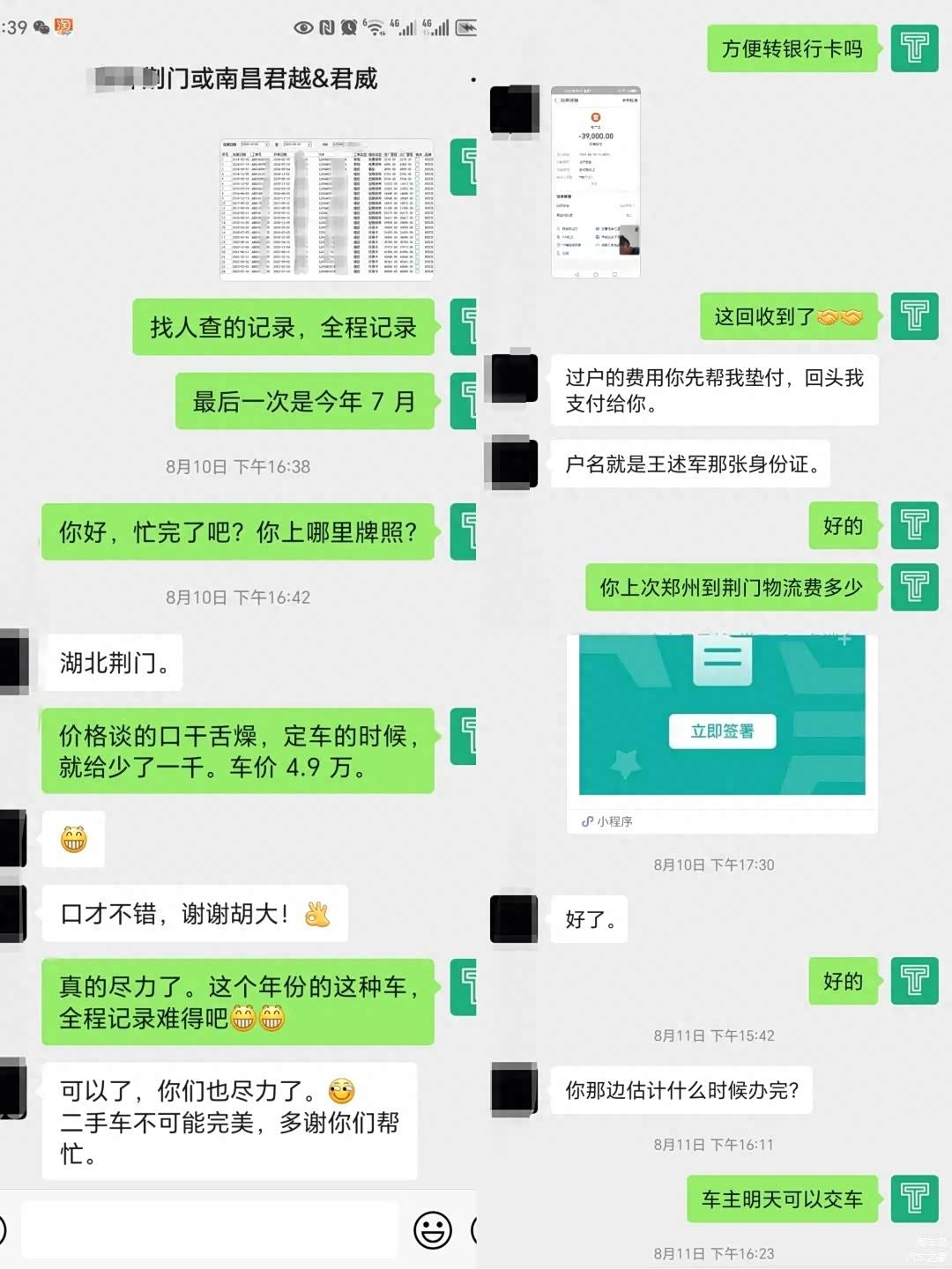 接下来胡大大和车主聊价格,岛弹希望能谈到4.8万。最后在我们努力下谈到4.9万。虽然价格不算便宜,好在车不错,二手车就是这样,一分价钱一分货。岛弹表示可以接受,满意成交。