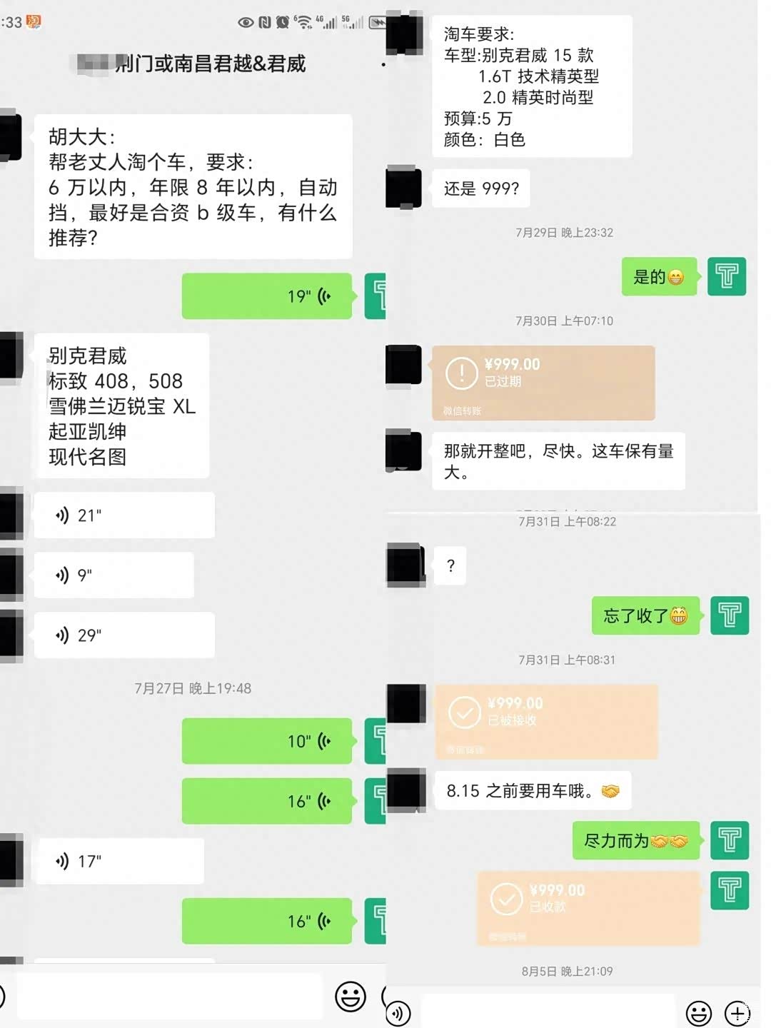 因为是第二次服务,所以岛弹对淘车流程也熟悉了,沟通好预算和要求,岛弹付了999元淘车诚意金,淘车顾问开始搜寻车源。