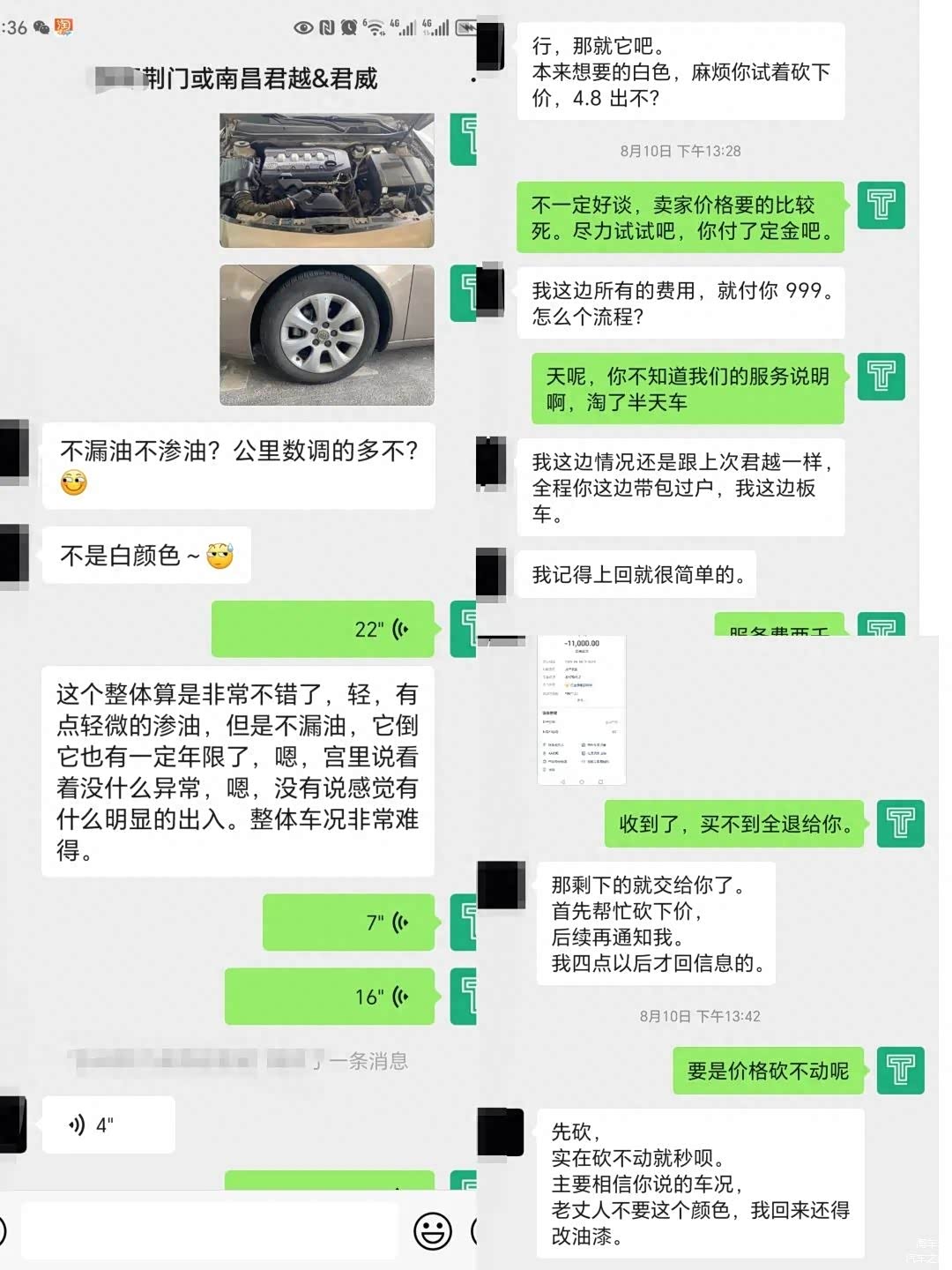 于是,按照淘车流程,客户付了一万元订车款,让我们复检车况,再谈谈价格。