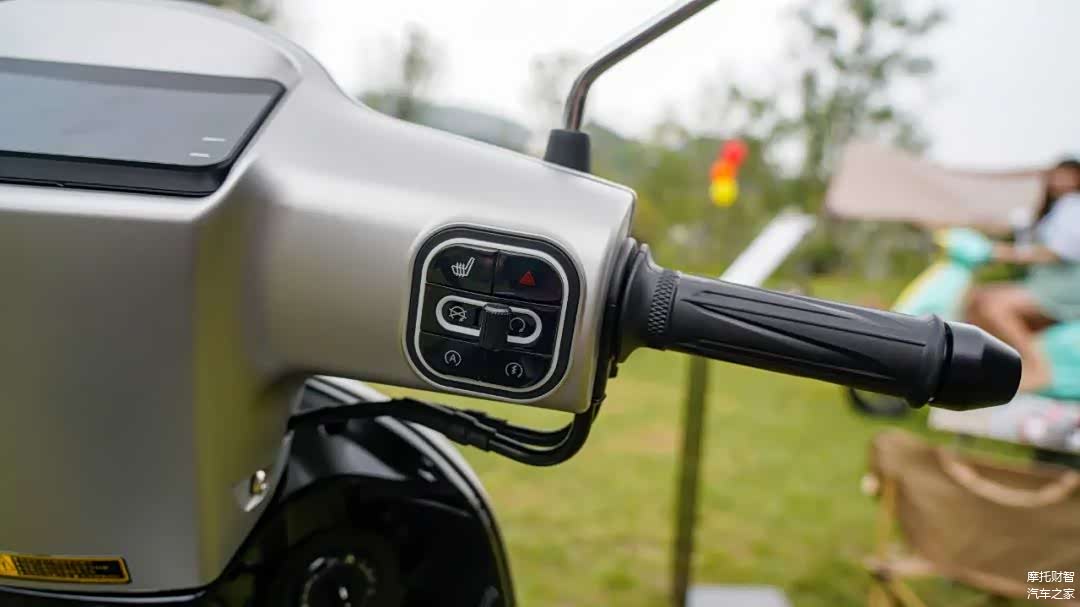 标配了坐垫加热,右手把左上角按钮开启和关闭,这在小排量踏板中还是绝无仅有的,但可惜的是没有配手把加热。