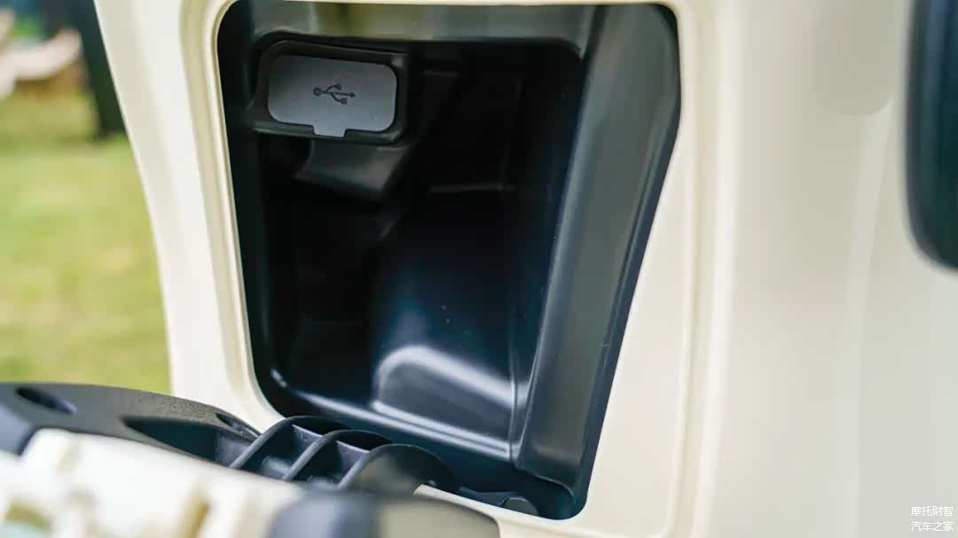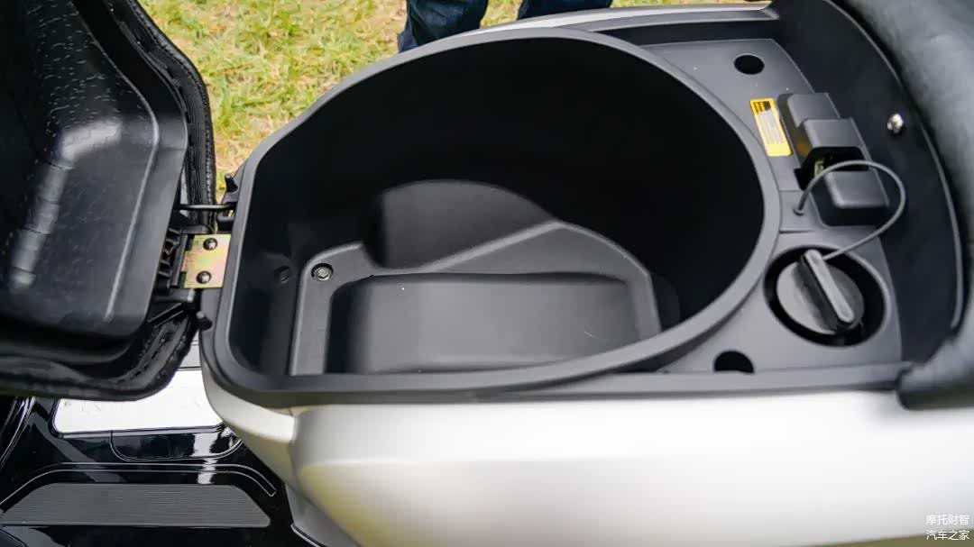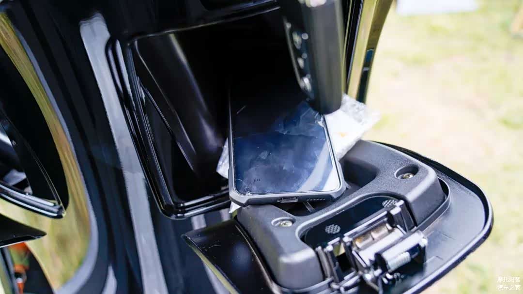 前部2个手套箱,其中左边里面标配USB、Type-C双充电口,双充电口在复古踏板中还非常少见。只是两个手套箱底部有凸起,一般小物件不容易放,空间也较小,稍大点的手机放不下。
